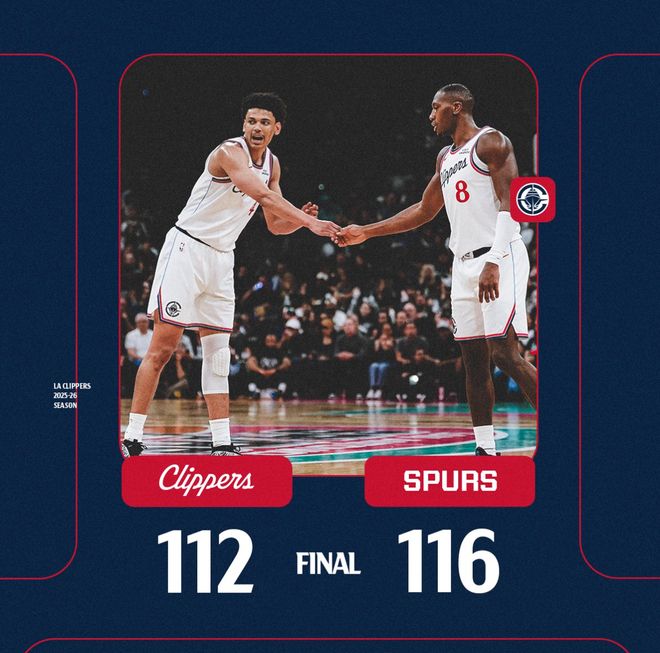 马刺116-112逆转快船,文班亚马21分钟27+10+4帽,伦纳德30+9