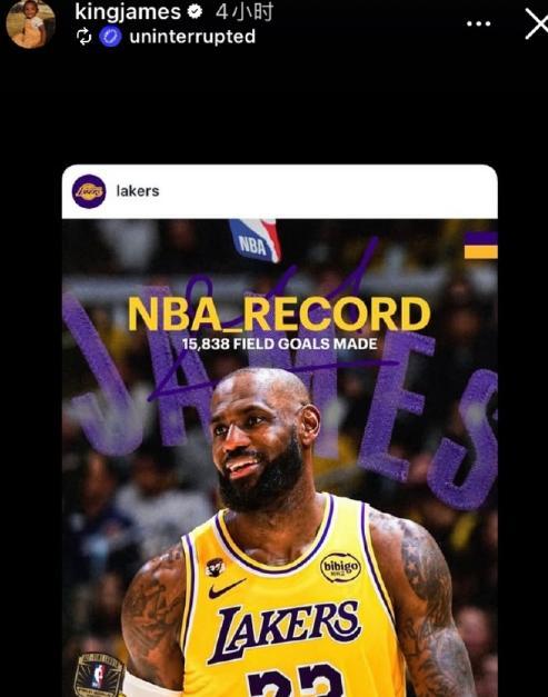 湖人输球我没输,詹姆斯狂更六条动态:庆祝自己登顶投篮历史第一